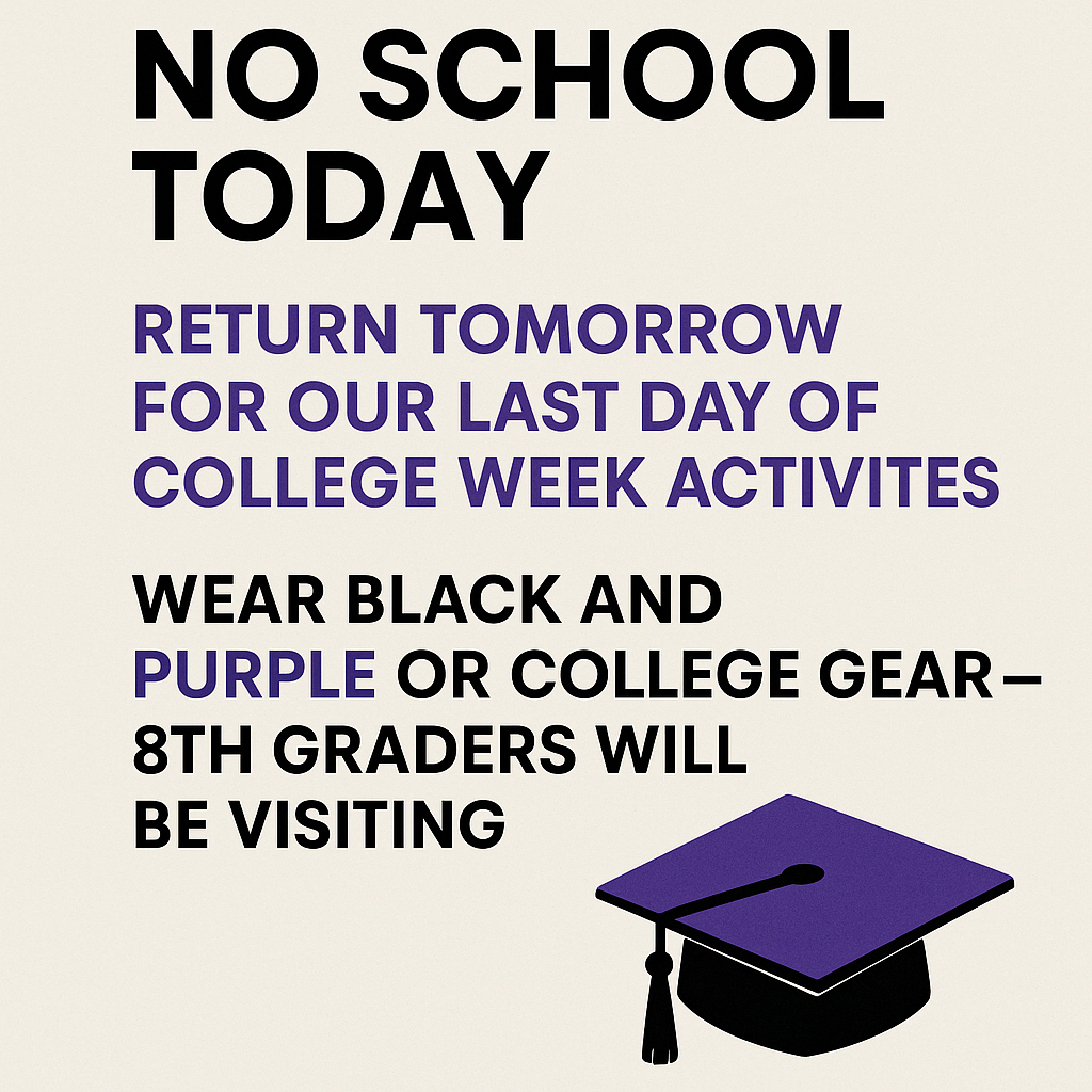 No school today. We return tomorrow for our last day of College Week! 🎓