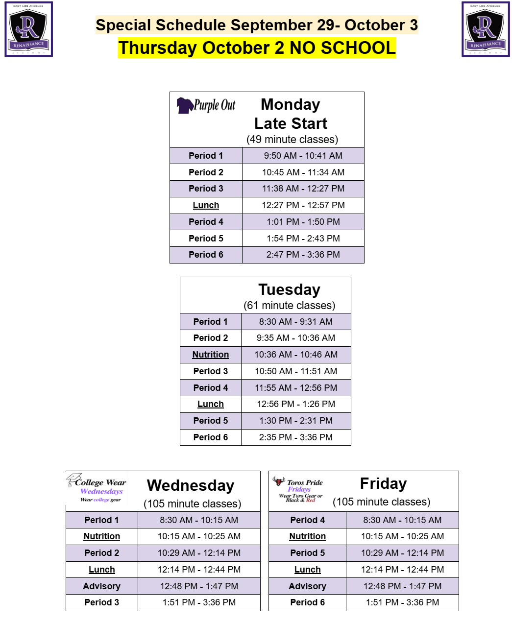 Show your school pride by wearing black and purple or college gear as we welcome our 8th-grade visitors from Brooklyn Ave!
