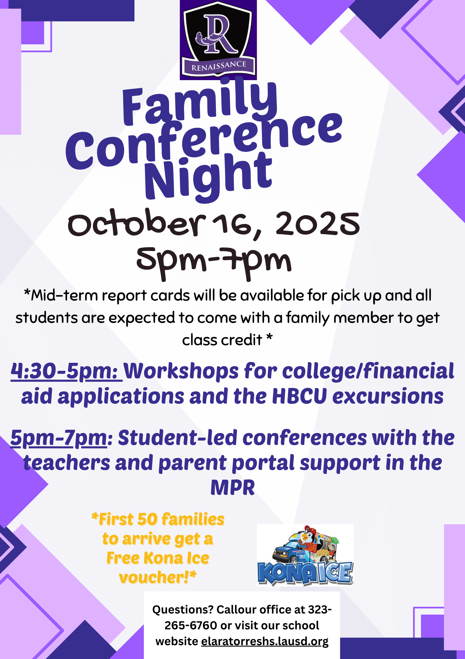 🎉 It’s not all about grades—we’ll also have free Kona Ice vouchers for the first 50 families and additional treats for sale, community partners like Young Producers Group, Educare, the Well-Being Center, and InnerCity Struggle giving out goodies, and a family photo booth to enjoy together.